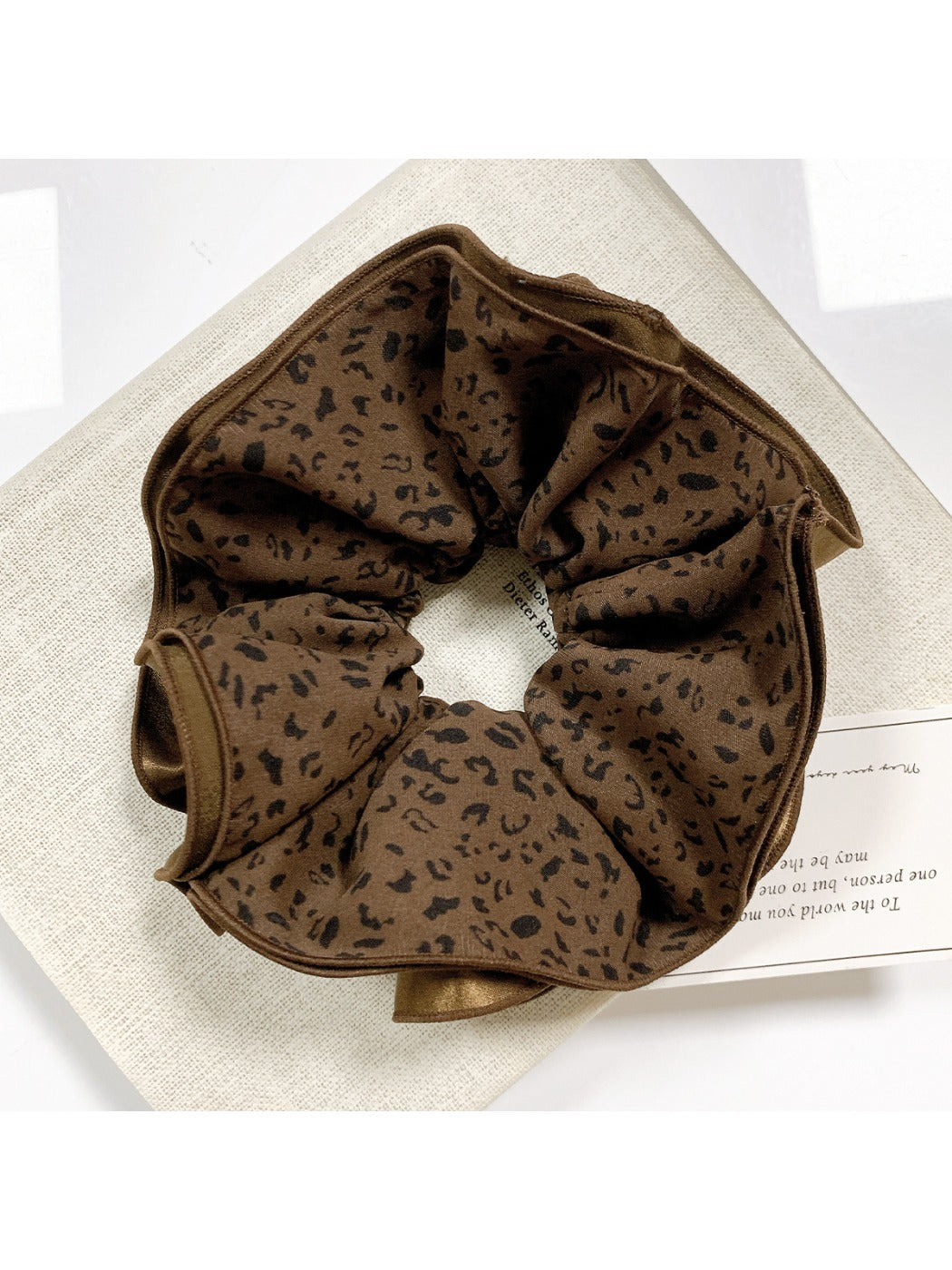 Bold leopard print scrunchie in soft polyester fabric. Lightweight and gentle, it secures hair without tight creases. Wear it for a ponytail, messy bun, half-up style, or as a wrist accessory.