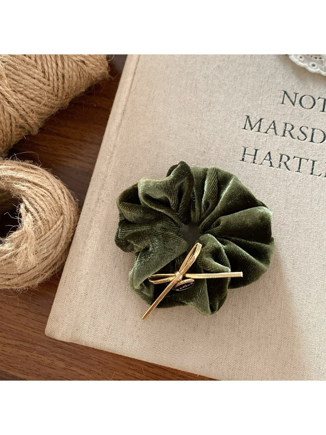 - Create a messy bun and slide the scrunchie over the knot.