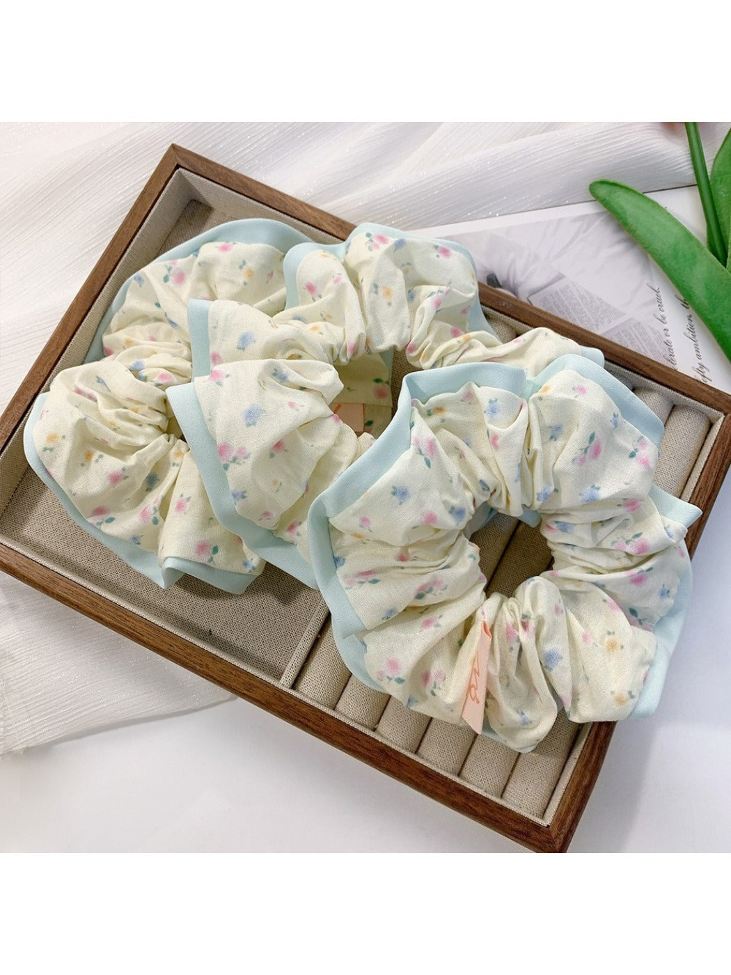 Add a soft, feminine touch with this cream floral scrunchie in satin-like polyester that’s gentle and lightweight.