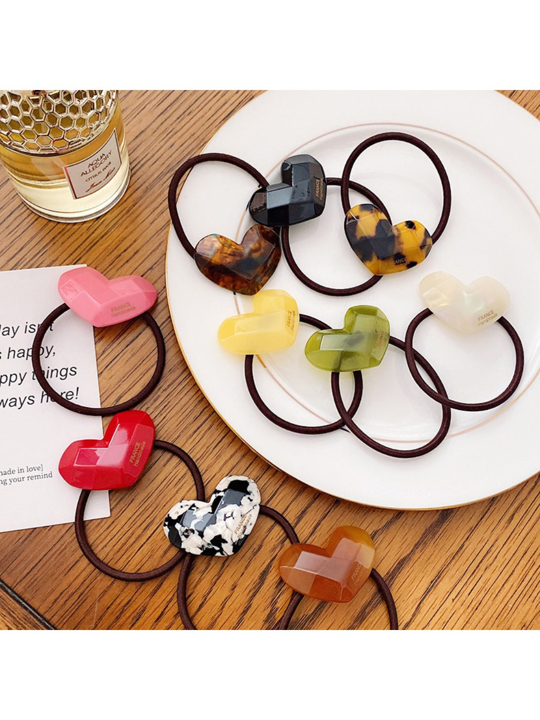 Gifty - Candy Color Heart Acetate Hair Ties Ponytail