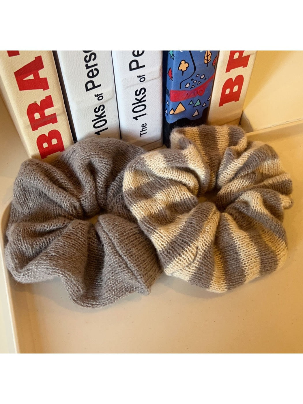 Gifty - Knitted Striped Scrunchie Hair Tie