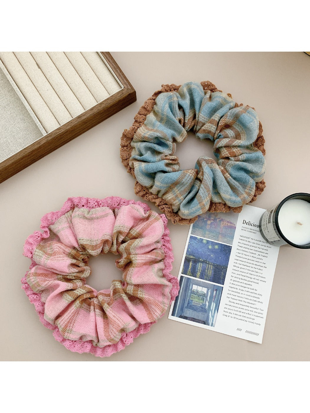 Gifty - Lace Color Block Gingham Head Tie (gingham head tie)