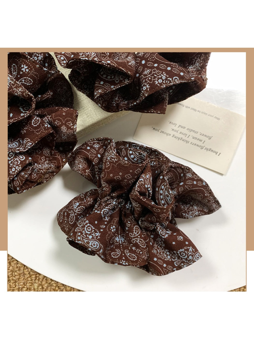 A lazy cashew flower scrunchie with a satin-like finish for easy styling. The gifty lazy cashew flower scrunchie works as a flower bow scrunchie on ponytails, buns and braids.