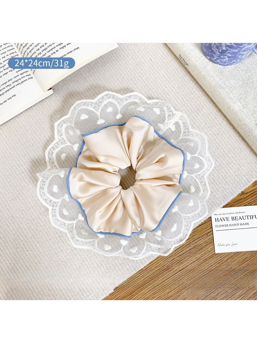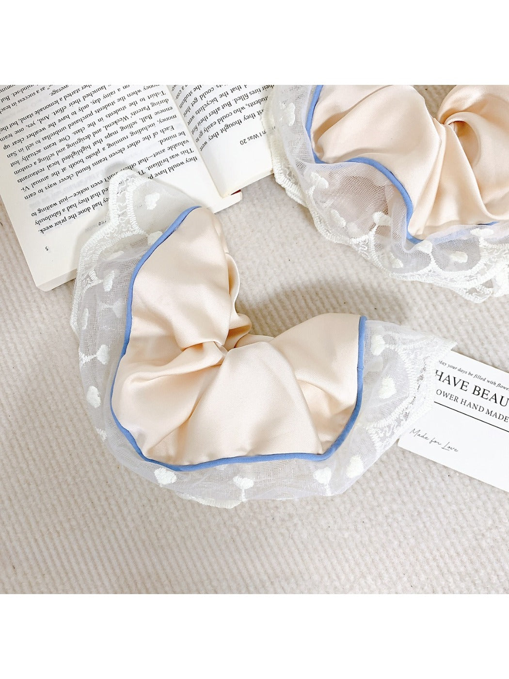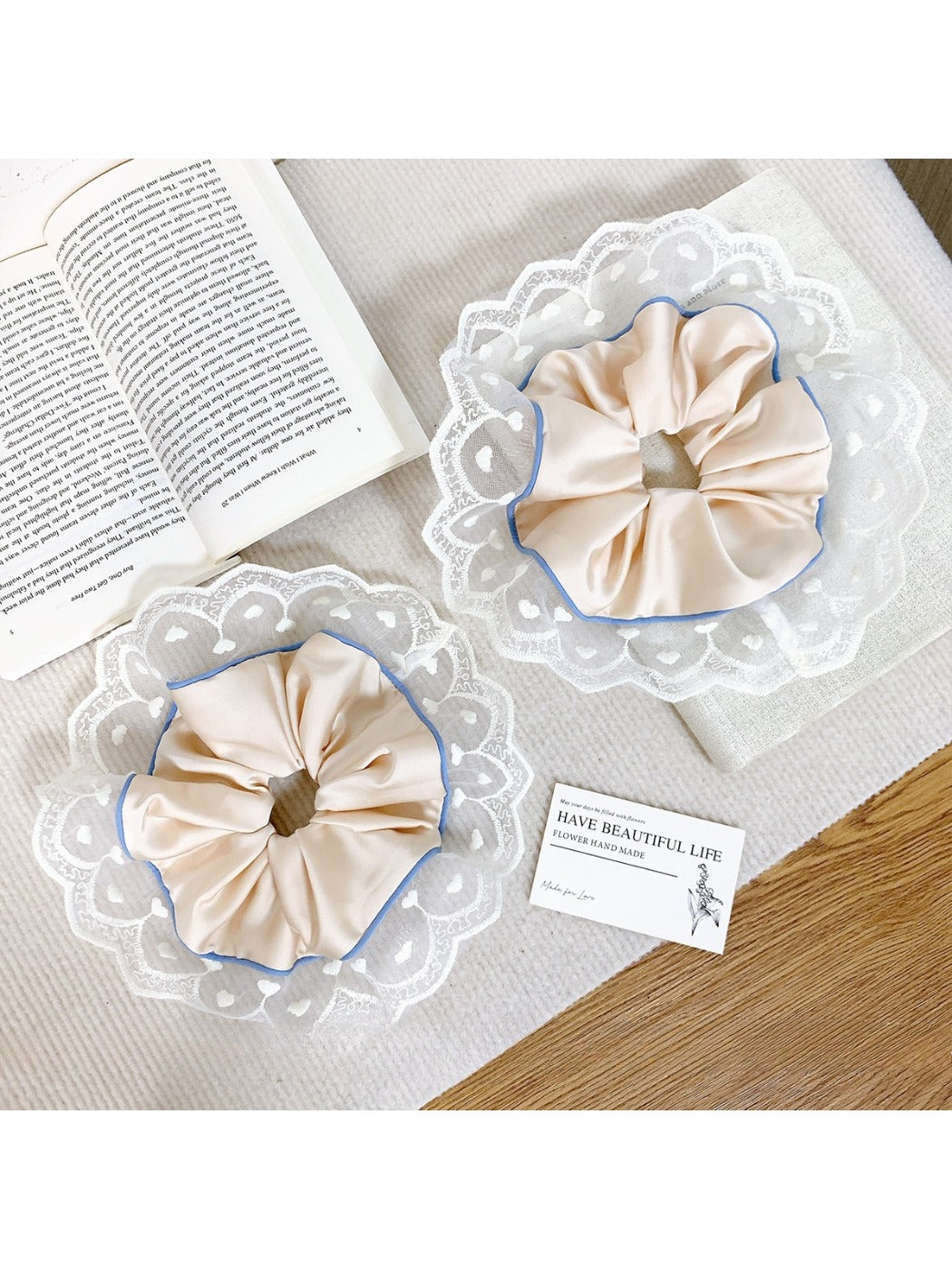 Styling tip: Wrap the lace edge hair loop once for a soft low ponytail or twice for a fuller bun with a vintage finish.