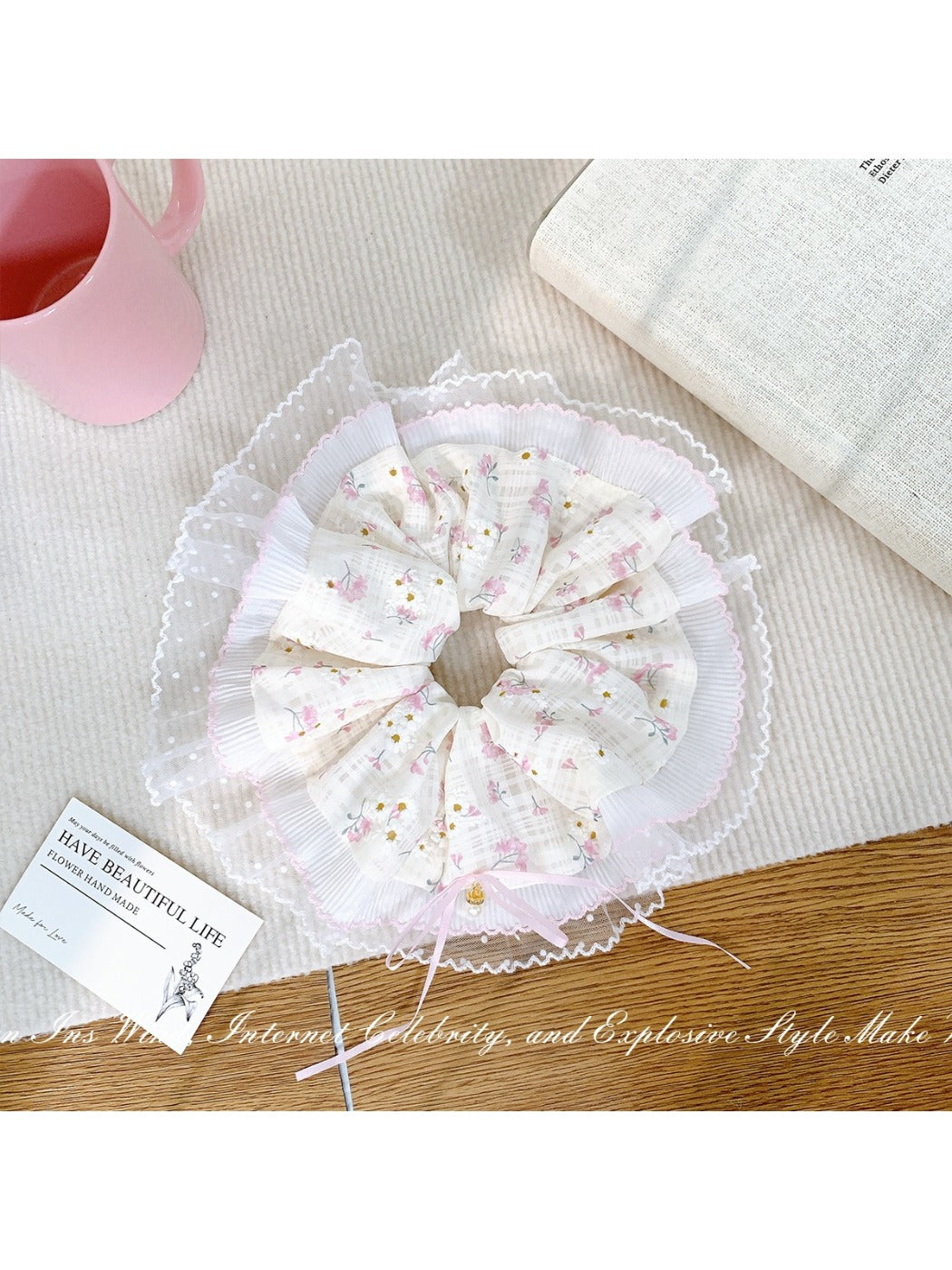 floral lace hair accessories designed to add romantic detail to everyday and bridal looks. These pieces pair floral lace look fabric with a gentle elastic core that is kind to hair and scalp, offering lightweight hold and shape retention. Two variants are included: Soft cloud dream hair circle (20cm x 20cm, 27.3g) and Soft cloud dream bow (25cm x 25cm, 25g). Designed for all hair types and lengths, they suit weddings, parties and daily wear with a crafted feel and comfortable fit. Use alongside floral scrunchies, lace headbands or boho lace headbands for layered styling.