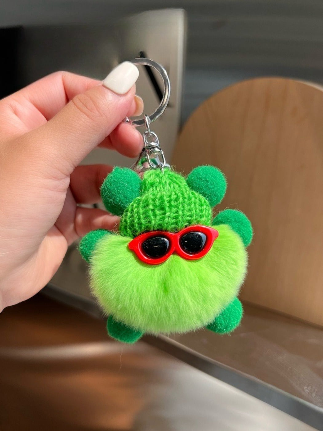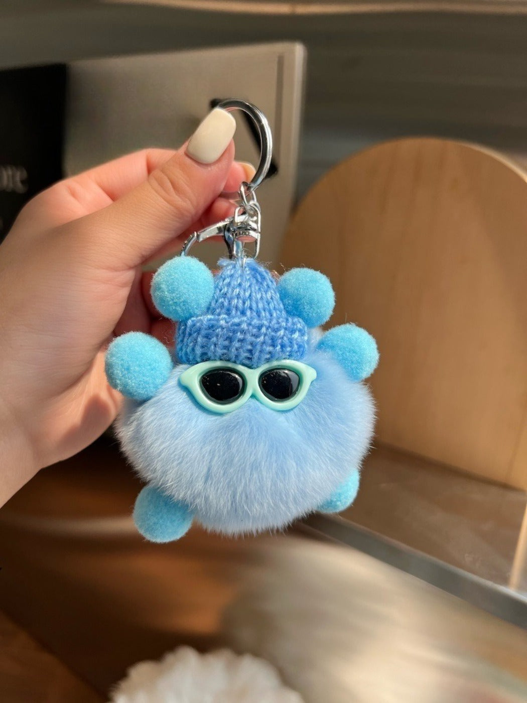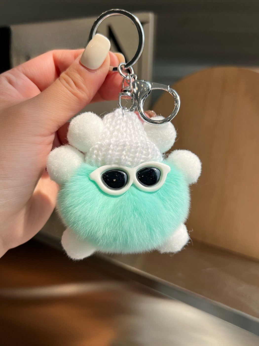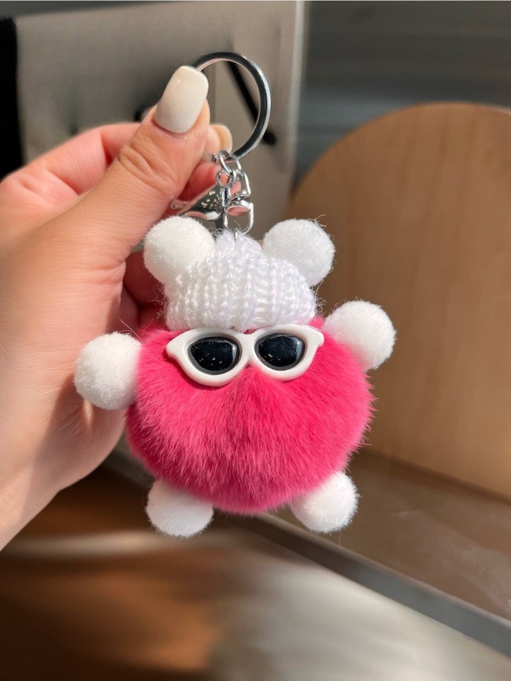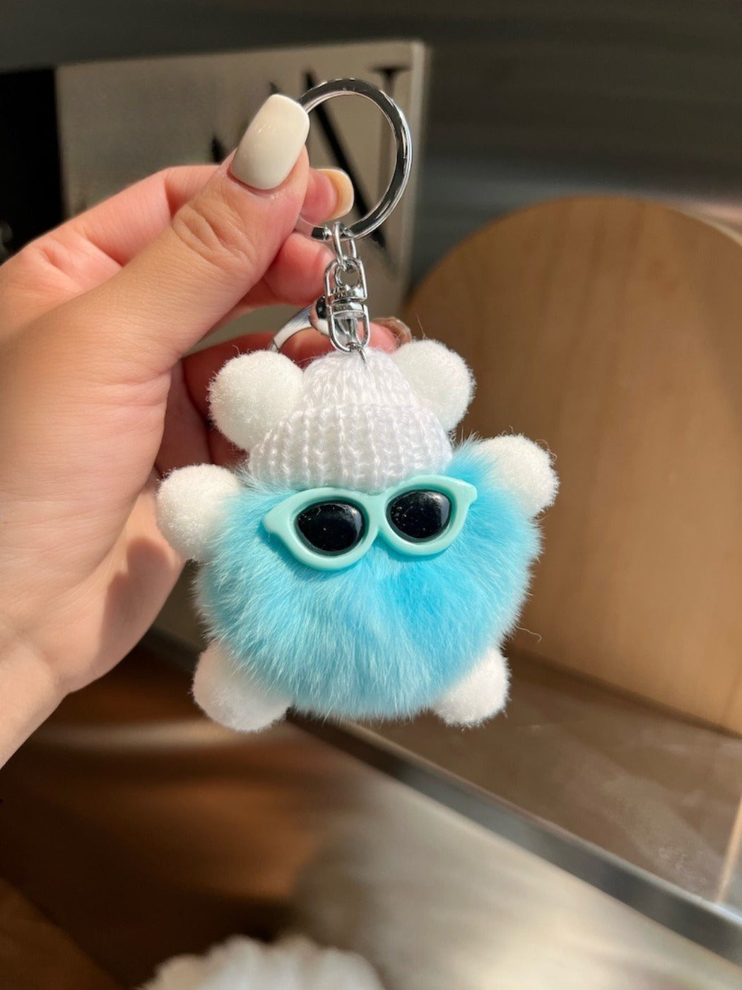 - Q: What is the keychain made of? A: Soft artificial fiber plush with sturdy stitching.