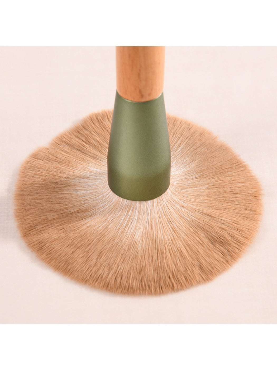 Dense, silky synthetic fibers pick up and distribute powders, creams, and liquids evenly for seamless blending.